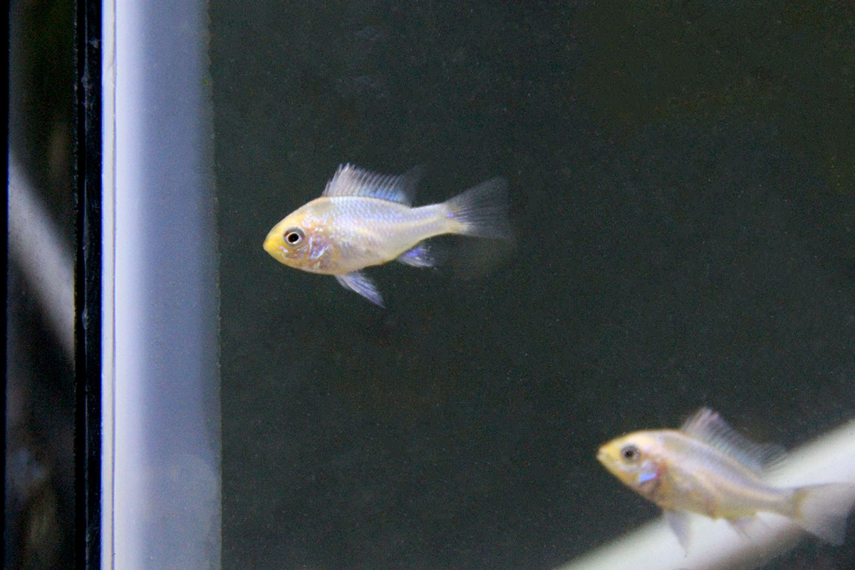 The Moon Dragon Ram resembles the more commonly found Electric Blue Ram, but it has a lighter shade of blue and a golden head/face. They are stunning to view, as their colors shine brightly under the light. Other names that this line goes by are Powder Blue Rams and Gold Head/Face Electric Blue Ram. This particular line carries long fin genes, so there is a chance they will have long fins. M. Ramirezi is a species of tropical fish that like it extra warm, with an ideal temperature of at least 82F. They can get quite territorial with other fish, especially their own kind. It’s best to have a lot of plants or other decorations to act as visual barriers in order to reduce aggression.