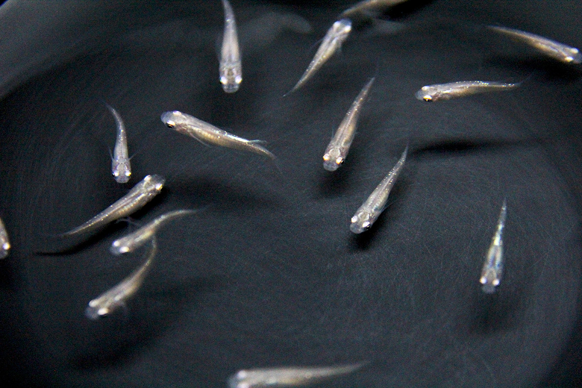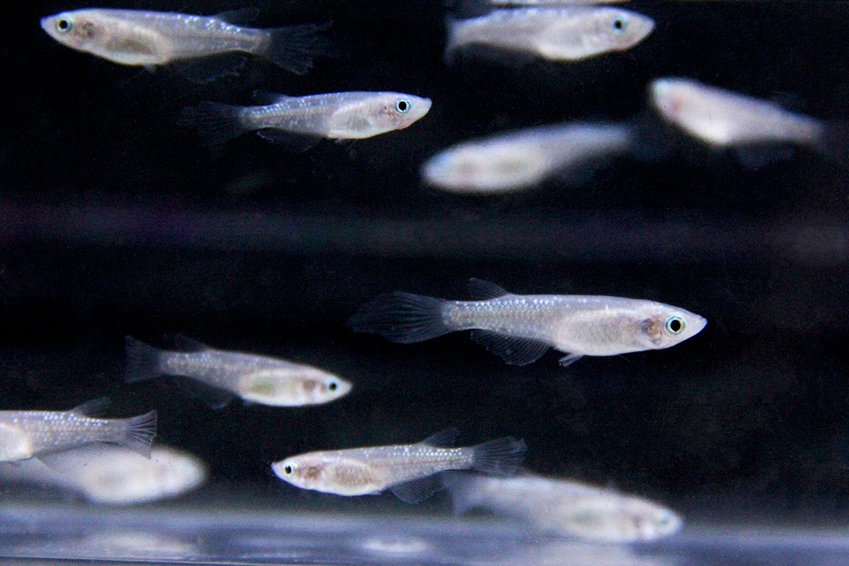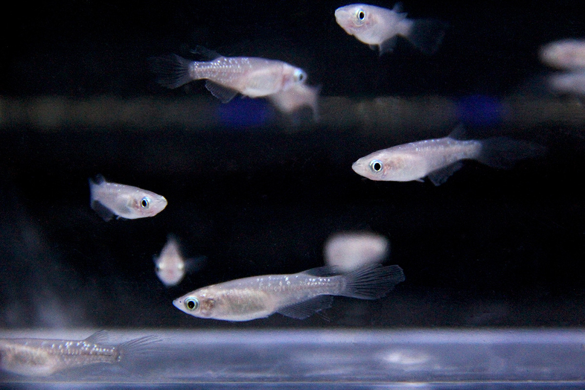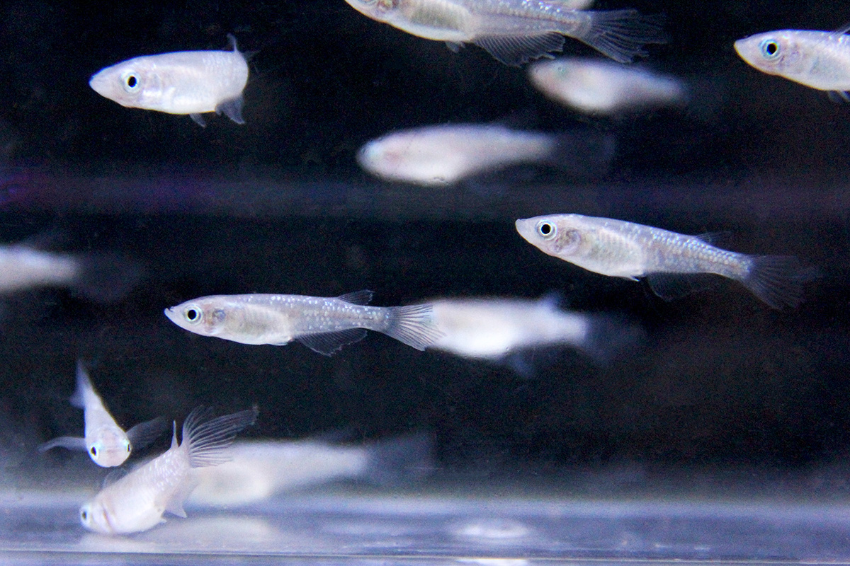 Renowned for its captivating, starry appearance, the Galaxy Ricefish features a unique pattern of iridescent spots resembling a night sky filled with stars. These fish in particular come from Long Fin Black Diamond Medaka parents, so they have the long fin trait to give them some extra elegance in their movements. The Galaxy Medaka are one of the few exceptions of ricefish that look better when they are viewed from the side than from the top. Medaka ricefish originated in East Asia and were commonly found in rice fields, giving them the name "ricefish". They are a very hardy fish that can withstand temperatures as low as 35F and as high as 105F, but prefer to stay between 60F-80F. They do not like aquariums or ponds with a strong current, and are actually often kept in mini ponds with no filter or aeration. Ricefish are like Koi fish, and are bred to be viewed from the top, making them excellent choices for pond fish!